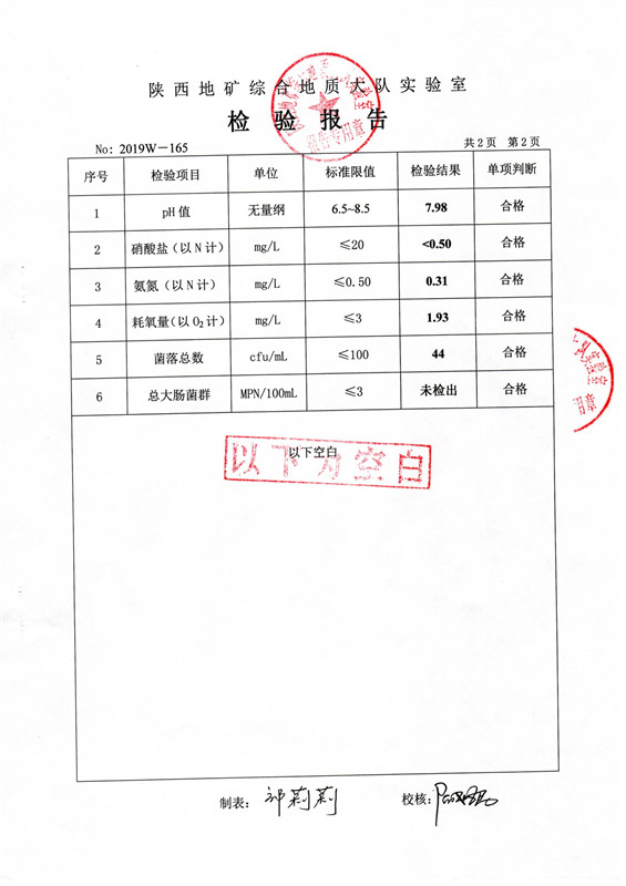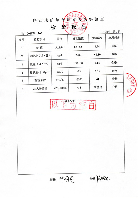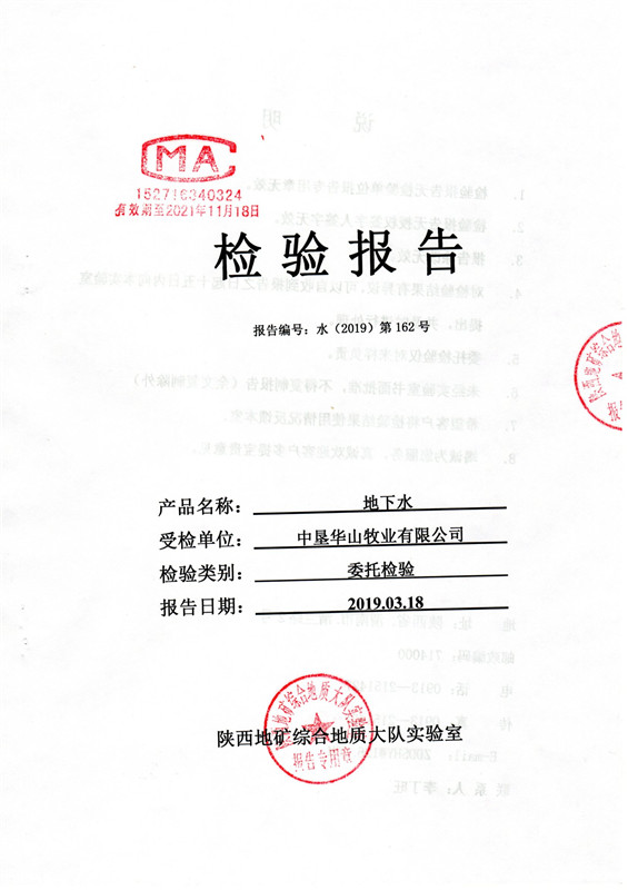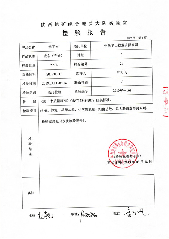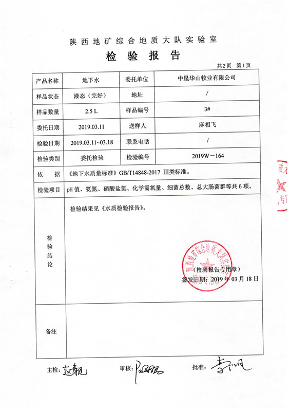 中墾華山牧業有限公司環境信息公開(地下水檢測報告)
