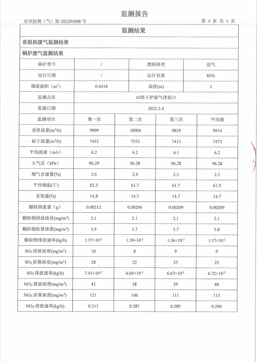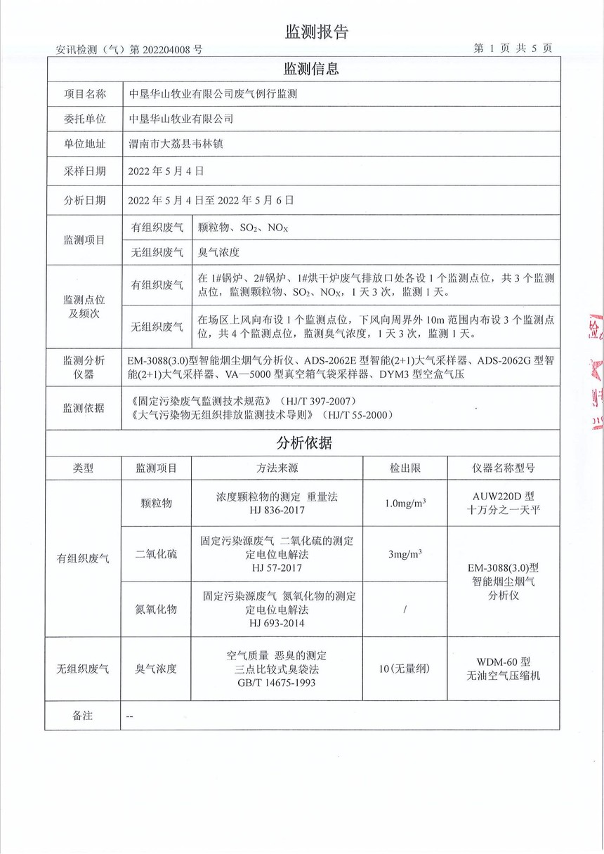 中墾華山牧業有限公司2022年4月沼肥檢測報告