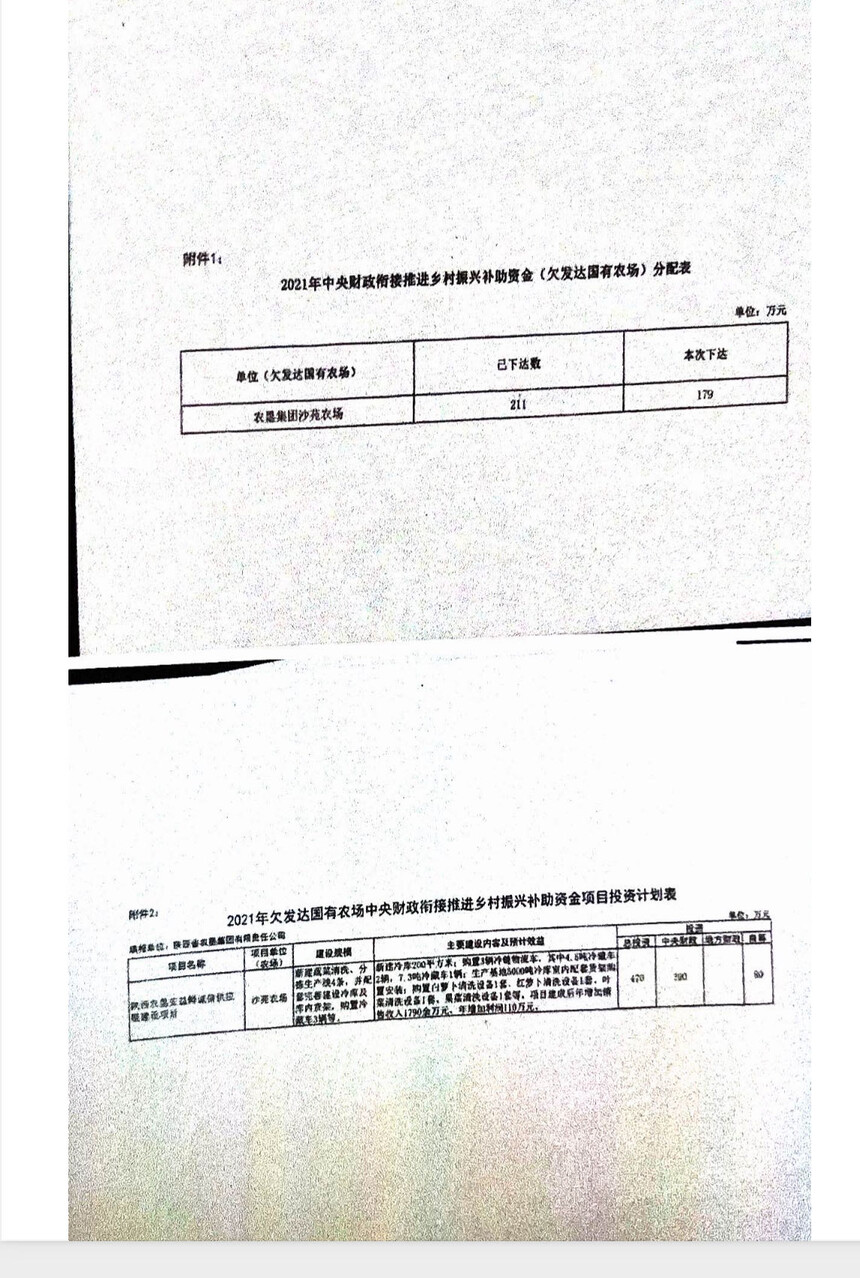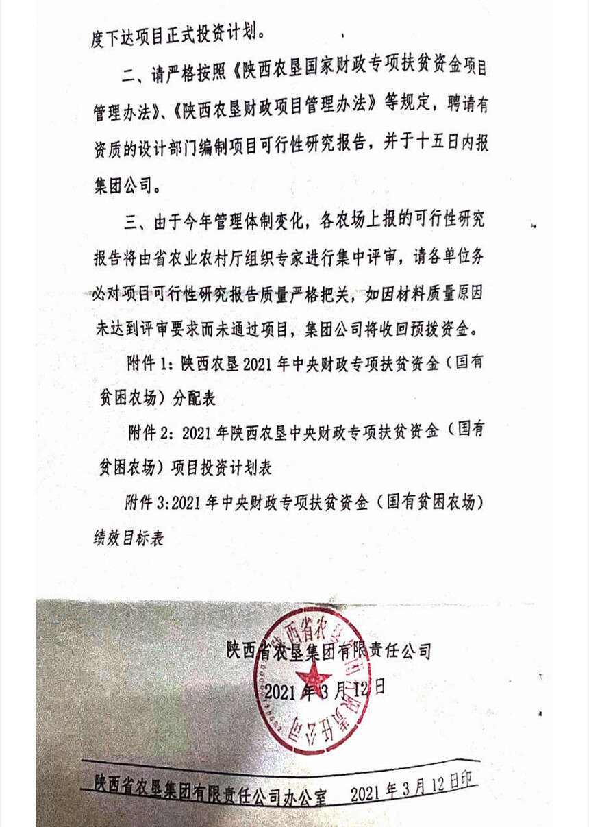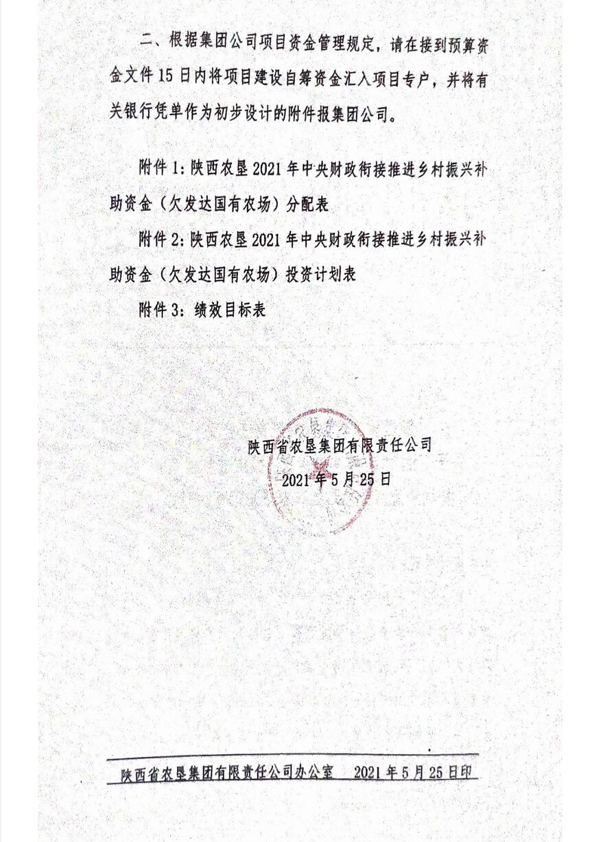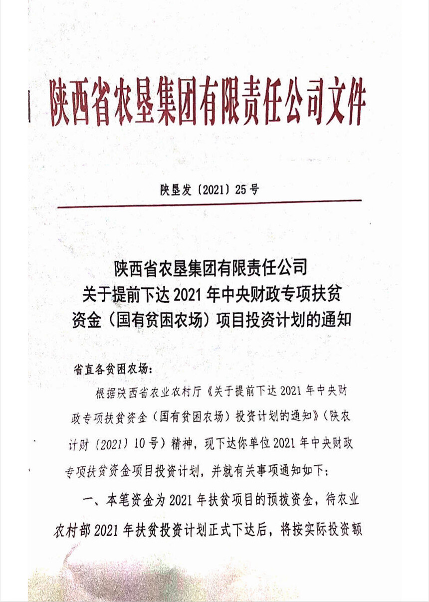 2021年中央財政銜接推進鄉村振興補助資金陜西農墾安益鮮誠信