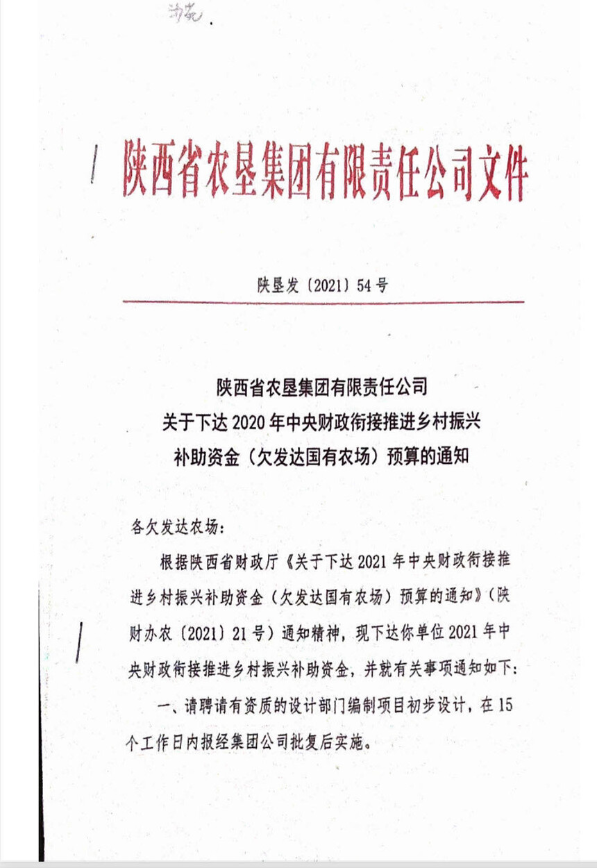 2024年中、省財政銜接推進鄉村振興補助資金陜西農墾沙苑農場