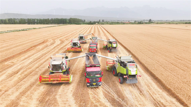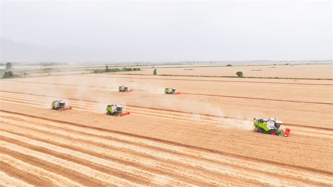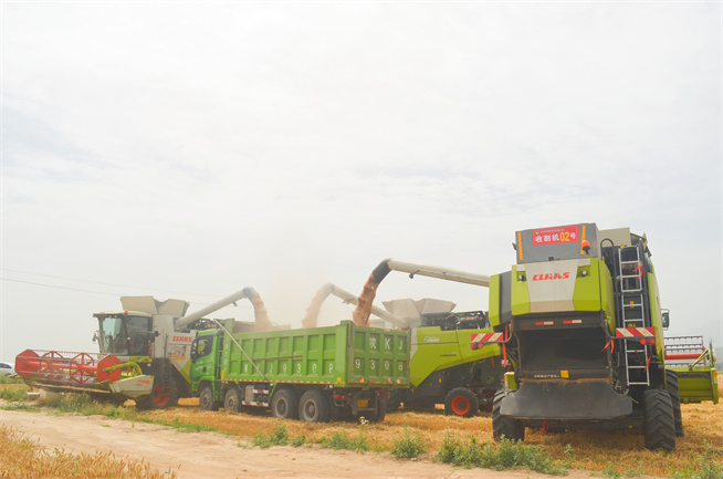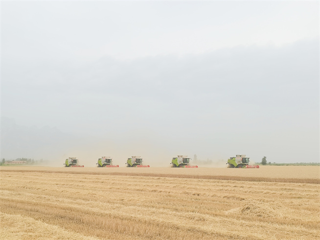 沙苑農場2024年“喜開”第一鐮时间:2024-05-31 【原创】 風吹麥田千層浪,又是一年麥收時。5月31日上午,沙苑農場“三夏”大面積收割在聯合種植項目華山種植基地“喜開鐮”。