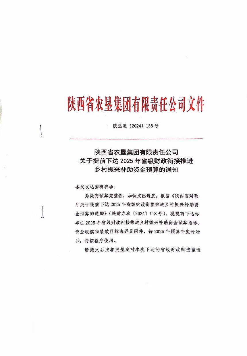 2025年中央財政銜接推進鄉村振興補助資金 陜西農墾沙苑農場