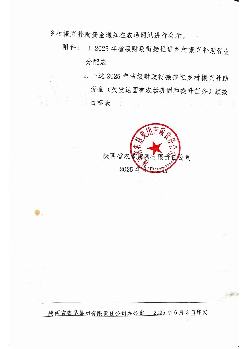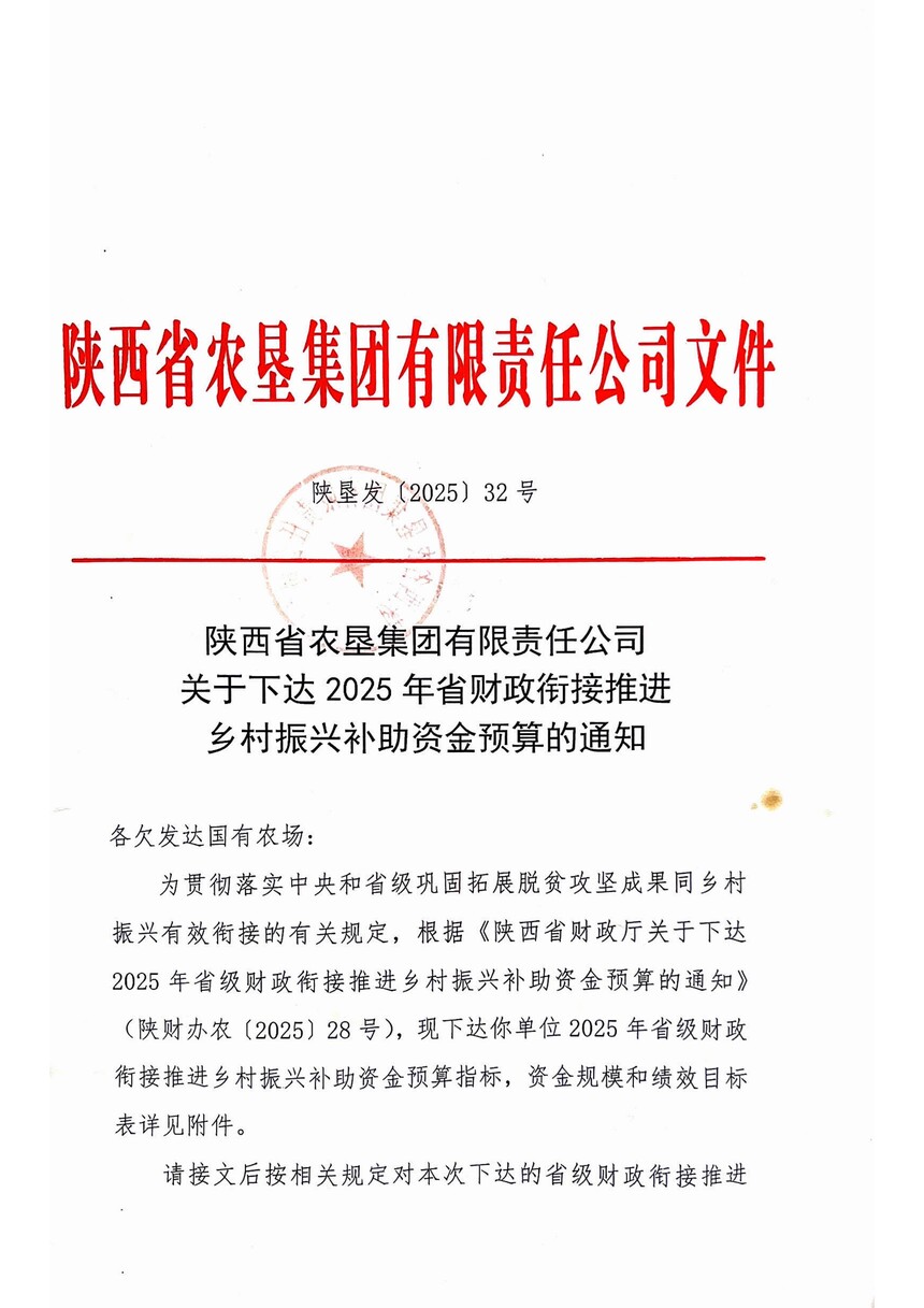 2025年中、省財政銜接推進鄉村振興補助資金 陜西農墾沙苑農