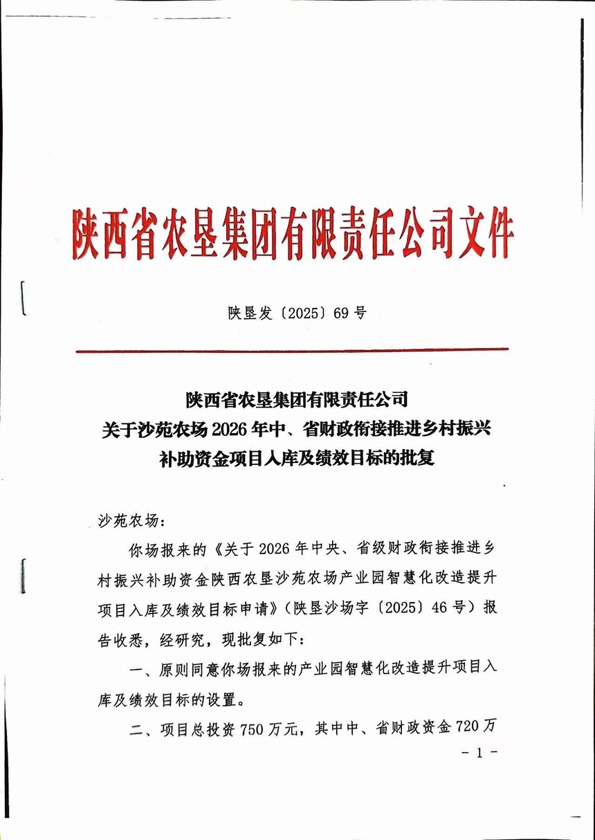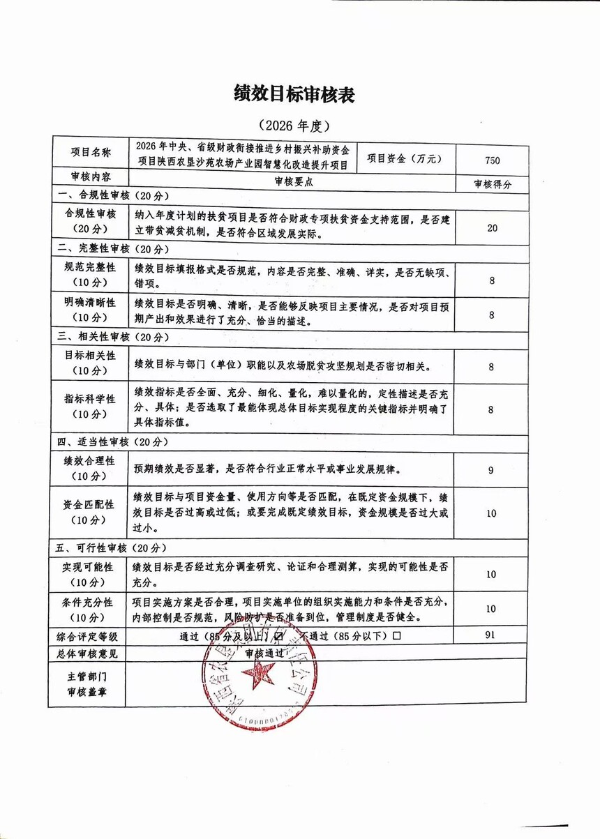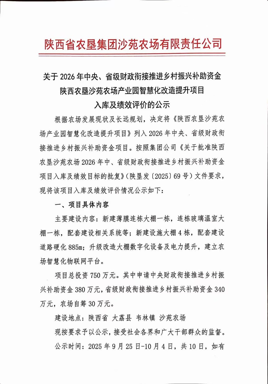 關于2026年中央、省級財政銜接推進鄉村振興補助資金陜西農墾沙苑農場產業園智慧化改造提升項目入庫及績效評價的公示